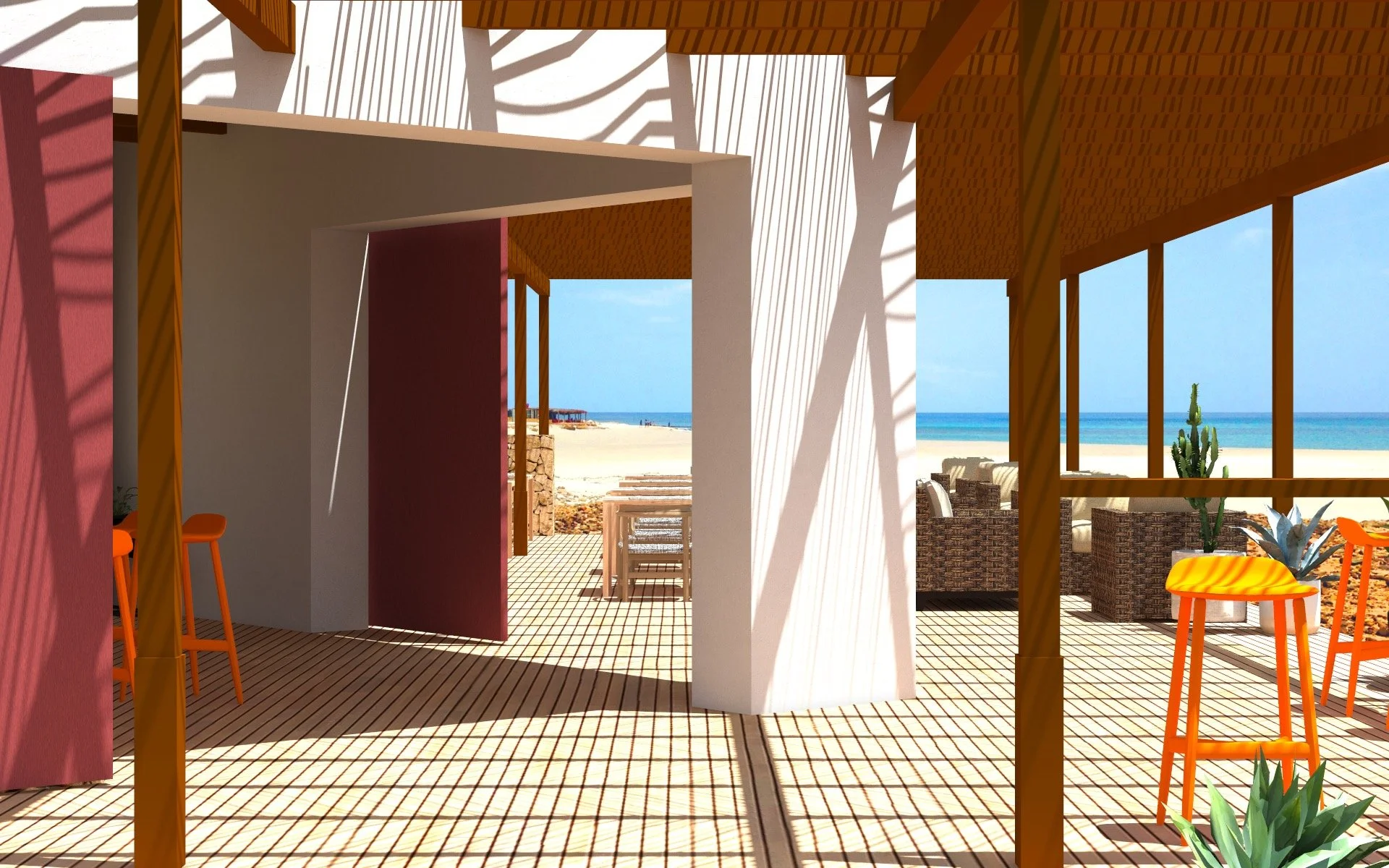 O projecto do novo restaurante Boca Beach surge do desejo do cliente de criar o seu próprio espaço gastronómico nos terrenos que albergaram várias gerações da sua família, na praia de Curralinho, onde ainda podem encontrar-se as traças das antigas casas.