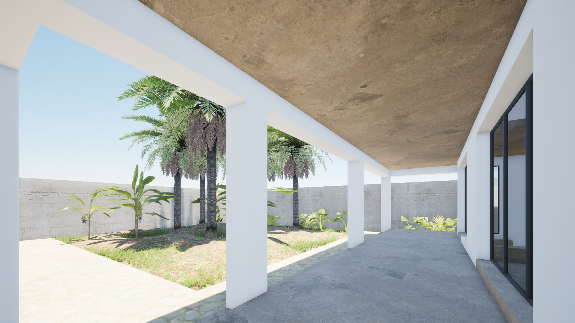 O projeto busca maximizar o bem-estar através de uma organização espacial ampla e fluida, onde os principais ambientes são cercados por espaços abertos: pé-direito duplo, pátios, galerias e um grande jardim que oferece sombra, frescor e vitalidade ao redor de toda a propriedade.