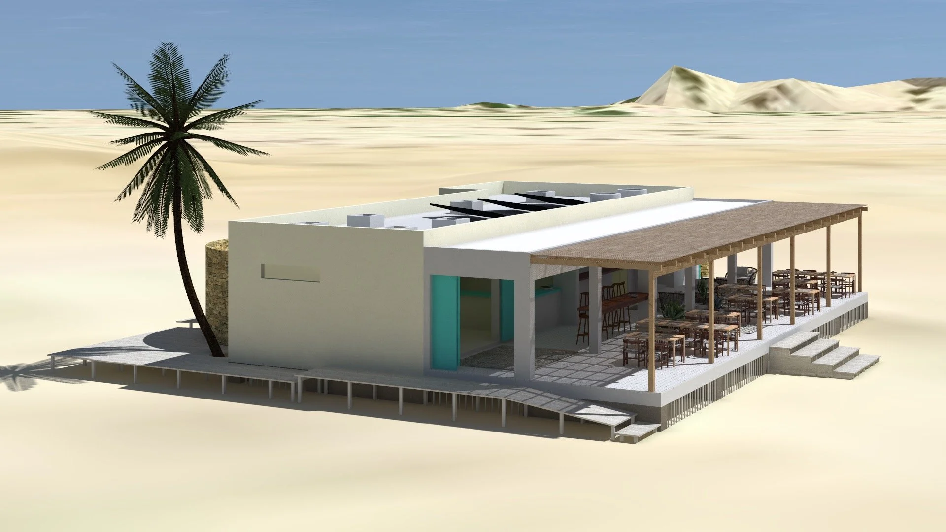 The central premise of the new Kite Kriol water sports club is to create a beautiful and pleasant space with optimal functionality that fully meets the clients' desires and the concessionaire's requirements for a first-class yacht club and restaurant.